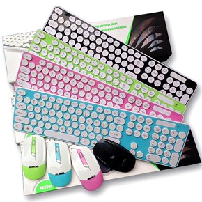 厂家供应 彩色圆形巧克力按键无线键鼠套装 HK39...