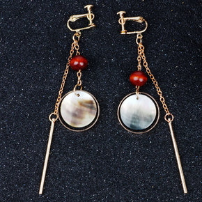 新款流苏天然海蝶贝无耳洞耳夹原木长款耳坠韩版时尚几...