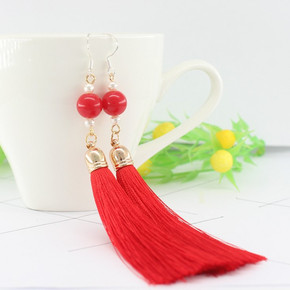 民族风长款流苏耳环女s925银勾款新娘舞蹈耳饰无耳...