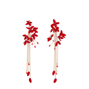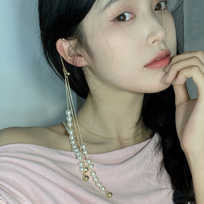 欧美夸张花朵圆珠长款流苏无耳洞耳夹小众ins冷淡耳...