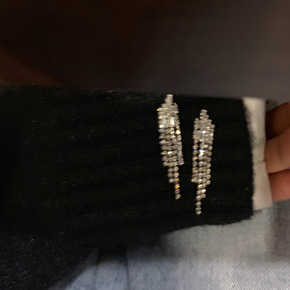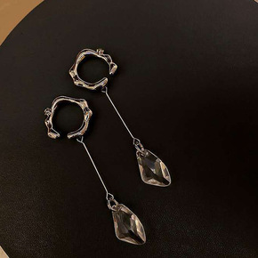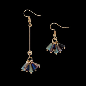 新款韩版手作幻彩水晶流苏耳环女长款不对称耳环无耳洞...