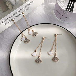 925银针流苏轻奢耳环女 韩版扇形耳钉长款耳坠网红...