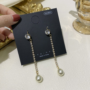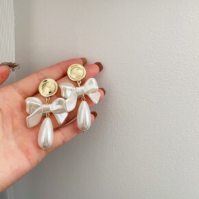 925银针蝴蝶结珍珠耳饰法式气质长款耳坠网红耳环无...