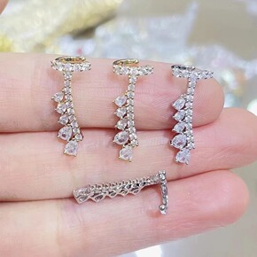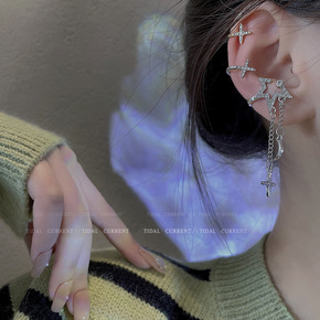 抖音爆款璀璨星星月亮无耳洞耳夹耳环不对称长款流苏镶...