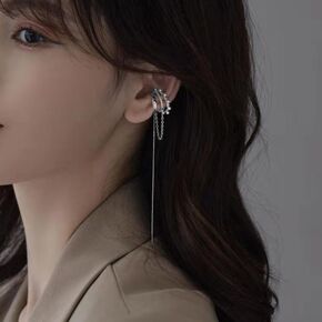 气质长款流苏耳环韩国网红耳夹女无耳洞高级感秋冬耳钉...