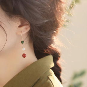 天然和田玉珍珠玛瑙长款耳钩S925银中国风高级复古...