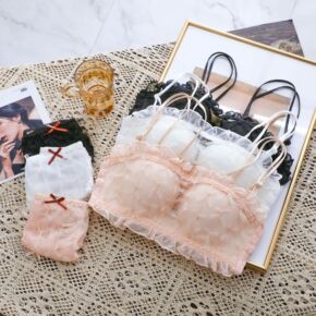 蕾丝抹胸型内衣中厚三排扣小胸聚拢无钢圈文胸厂家批发...