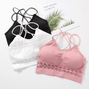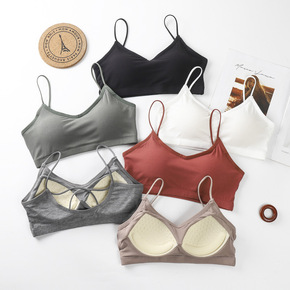 一体式可调节肩带无钢圈自带胸垫抹胸内衣运动睡眠防走...