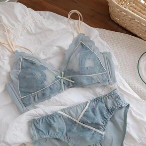 云朵舒芙蕾~少女薄款蕾丝三角杯无钢圈小胸内衣纯色文...