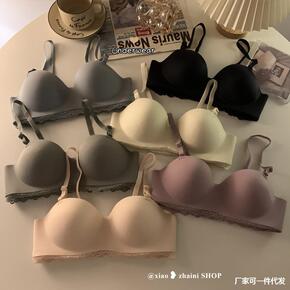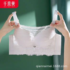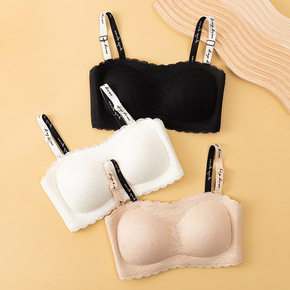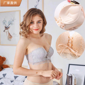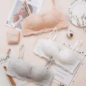 新款无钢圈聚拢无肩带蕾丝小胸少女内衣调整型防下垂上...