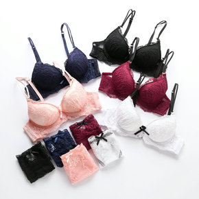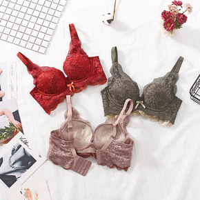 新款法式浪漫性感蕾丝内衣女中厚杯聚拢无钢圈收副乳亲...