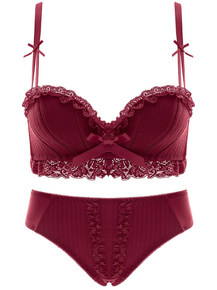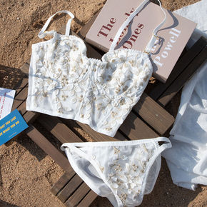 维亚无钢圈内衣蕾丝交叉美背文胸厂套装婚纱性感聚拢防...