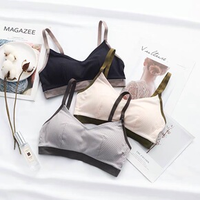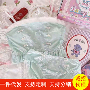 日系复古暖冬丝绒无钢圈抹胸少女背心文胸套装毛绒绒甜...