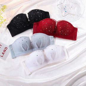黑科技蕾丝抹胸无肩带内衣女士夏季隐形文胸无钢圈防走...