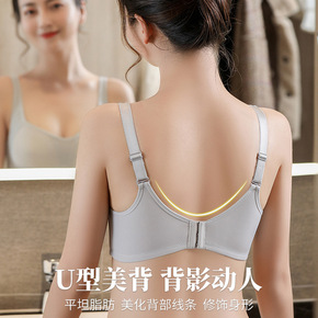 夏季超薄款bra内衣女无钢圈u文胸聚拢调整型夏天透...