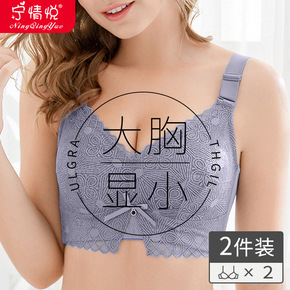 大胸显小内衣女超薄款文胸套装无钢圈全罩杯大码聚拢防...