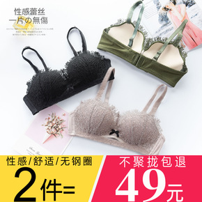 性感蕾丝内衣女无钢圈套装加厚款上托防下垂胸罩少女小...