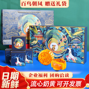 中秋流心奶黄月饼广式百鸟朝凤流心月饼礼盒装公司员工...