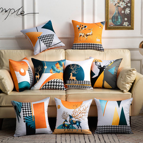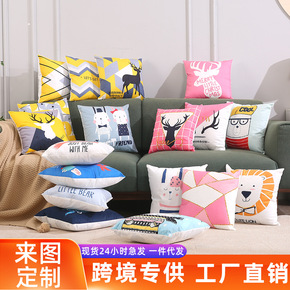 亚马逊抱枕定制桃皮绒亚麻跨境家居腰靠枕沙发抱枕套定...
