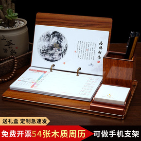 木质台历2022年笔筒皮质礼盒年历虎年中国风工作周...