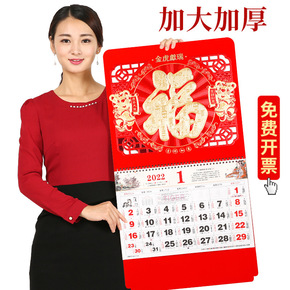 虎年挂历2022年大六开荧光红透雕立体福字月历金虎...