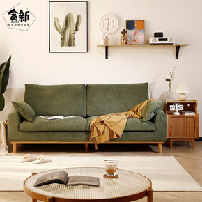 家具北欧布艺沙发灯芯绒现代简约墨绿客厅小户型日式复...