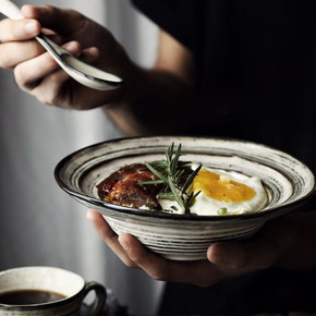 日式陶瓷釉深盘家用餐厅酒店陶瓷深盘汤盘沙拉菜盘厨房...