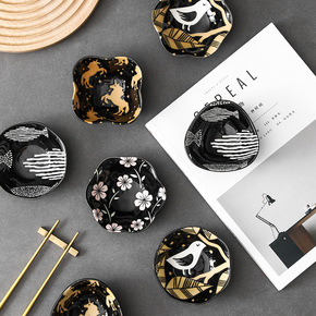 日式风格浮雕立体釉下彩陶瓷餐具家用轻奢小味碟酱油调...