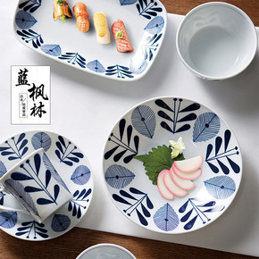 蓝枫林日本进口餐具日式陶瓷轻量饭碗盘釉下彩和风面碗...