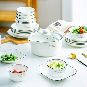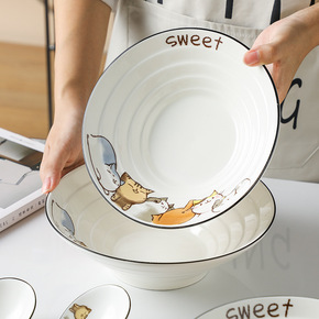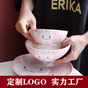 日式卡通陶瓷餐具套装碗碟盘釉下彩饭碗家用菜盘可爱杯...