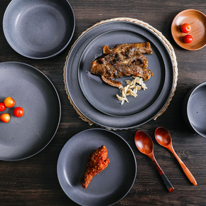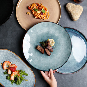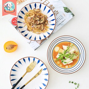 日式8英寸浅盘陶瓷釉下彩菜盘点心盘简约家用小牛排盘...