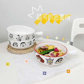 创意个性家用陶瓷双耳汤碗单个宿舍学生带盖大号泡面碗...