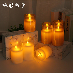 电子蜡烛亚马逊热销仿真火焰蜡烛灯遥控套装电镀茶色玻...