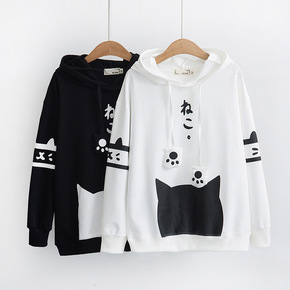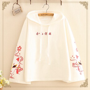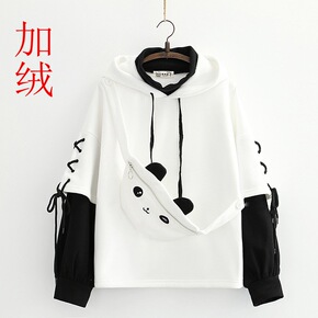 日系森女19秋装原宿风狐狸连帽长袖薄款卫衣少女软萌...