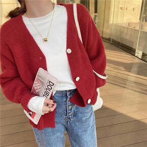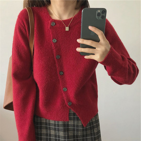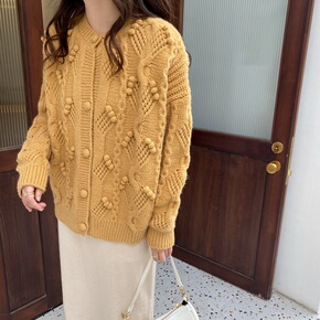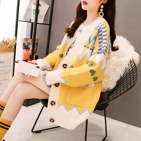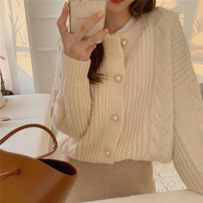 日系温柔风毛衣女外套宽松外穿2021春秋新款复古慵...