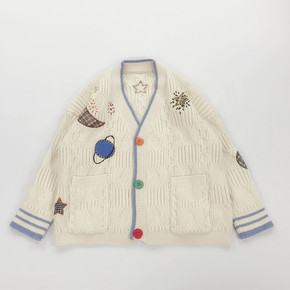 日系元气少女贴布星球刺绣厚实毛衣开衫外套学生女一件...