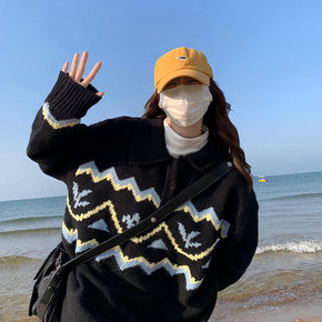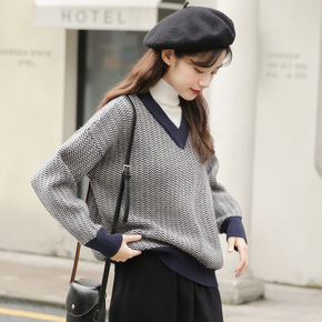 条纹毛衣女秋冬宽松套头慵懒风外穿显瘦针织毛衫上衣c...