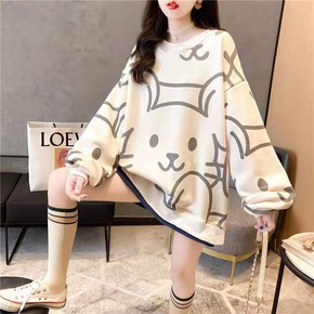 W9155日系2020秋季新款印花连帽卫衣宽松显瘦...