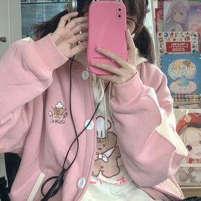 秋冬日系软妹可爱拼色棒球服卫衣女学生韩版宽松百搭开...