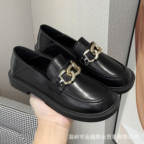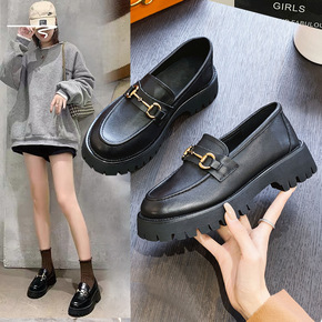 英伦风小皮鞋女潮流春季新款韩版两穿日系网红金属扣学...