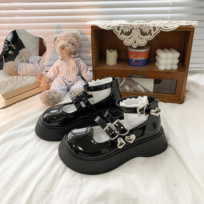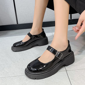 日系jk黑色小皮鞋女夏季薄款厚底圆头复古宽头玛丽珍...
