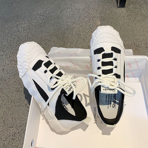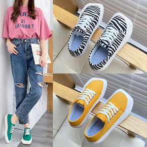 方头丑萌帆布鞋女韩版平底休闲豹纹小白鞋2021新款...