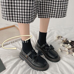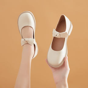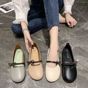 复古百搭蝴蝶结玛丽珍鞋2021年秋季新款浅口小皮鞋...