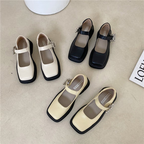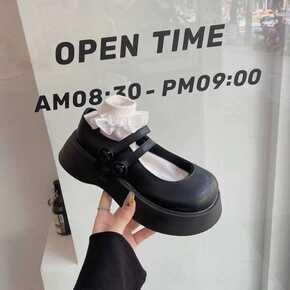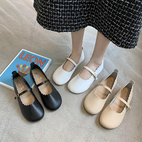 2021秋季厚底玛丽珍鞋女日系平底复古白色法式仙女...