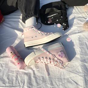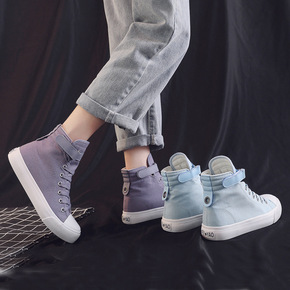 高帮时尚韩版学生潮鞋高帮帆布鞋女2021夏季薄款百...