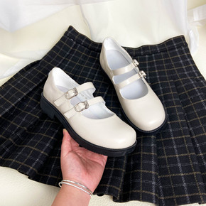 玛丽珍皮鞋白色小女夏季薄款圆头配裙子日系jk鞋子复...