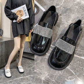 日系复古小皮鞋女2021秋季新款英伦风水钻乐福鞋大...