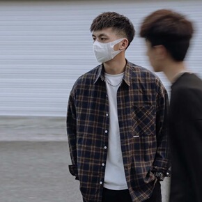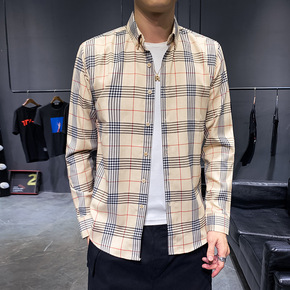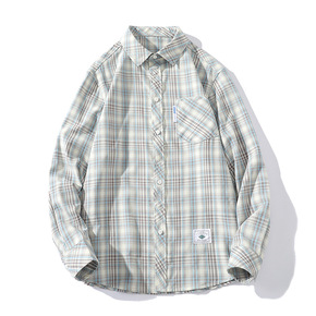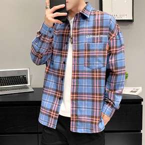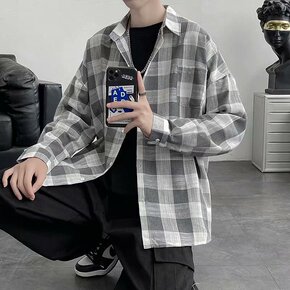日系文艺格子衬衫男士春秋季港风宽松长袖衬衣痞帅百搭...
