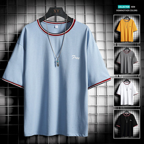 2021新款夏季潮流短袖T恤男生大码宽松T恤圆领港...