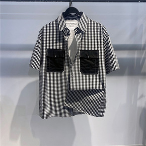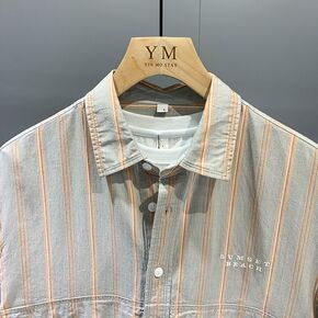 日系条纹短袖衬衫男宽松2021夏季薄款潮牌帅气男士...